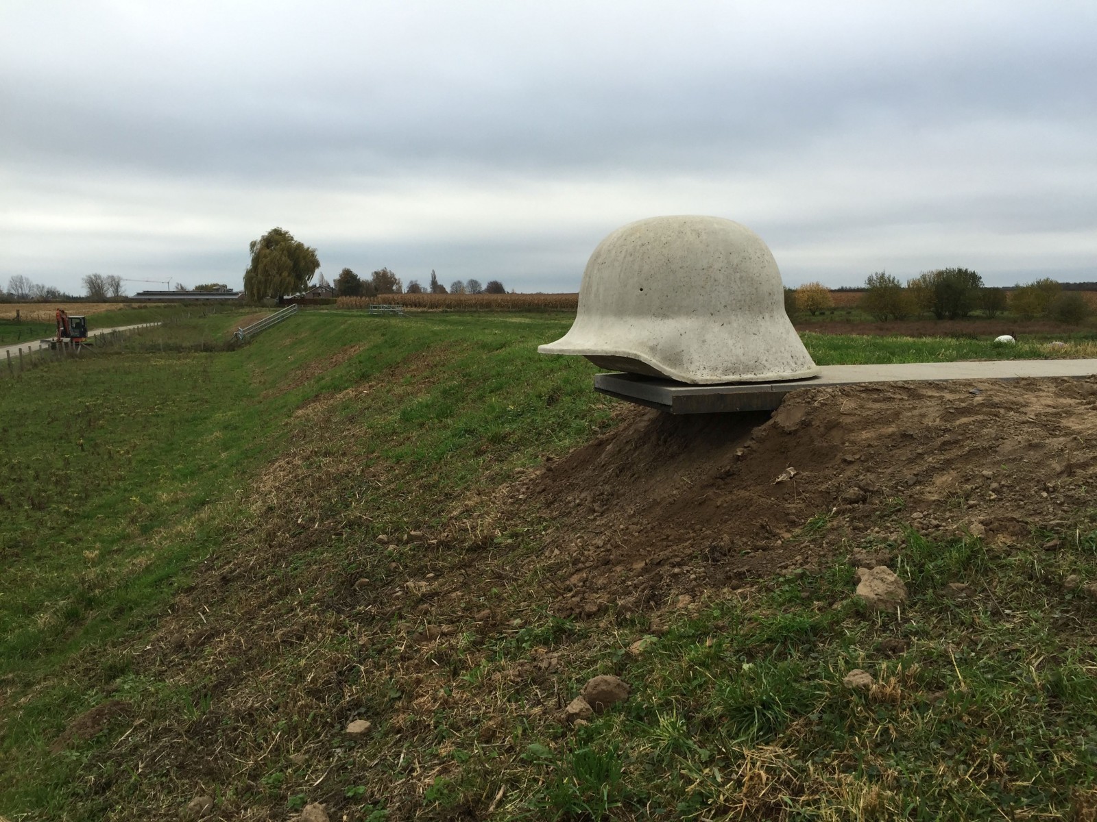 De 44 betonnen helmen van de provincie naar aanleiding van 100 jaar Groote Oorlog staan vanaf nu in Halen. Ze bevinden zich op een terrein aan de Betserbaan, dat na een verfraaiing officieel wordt ingehuldigd.